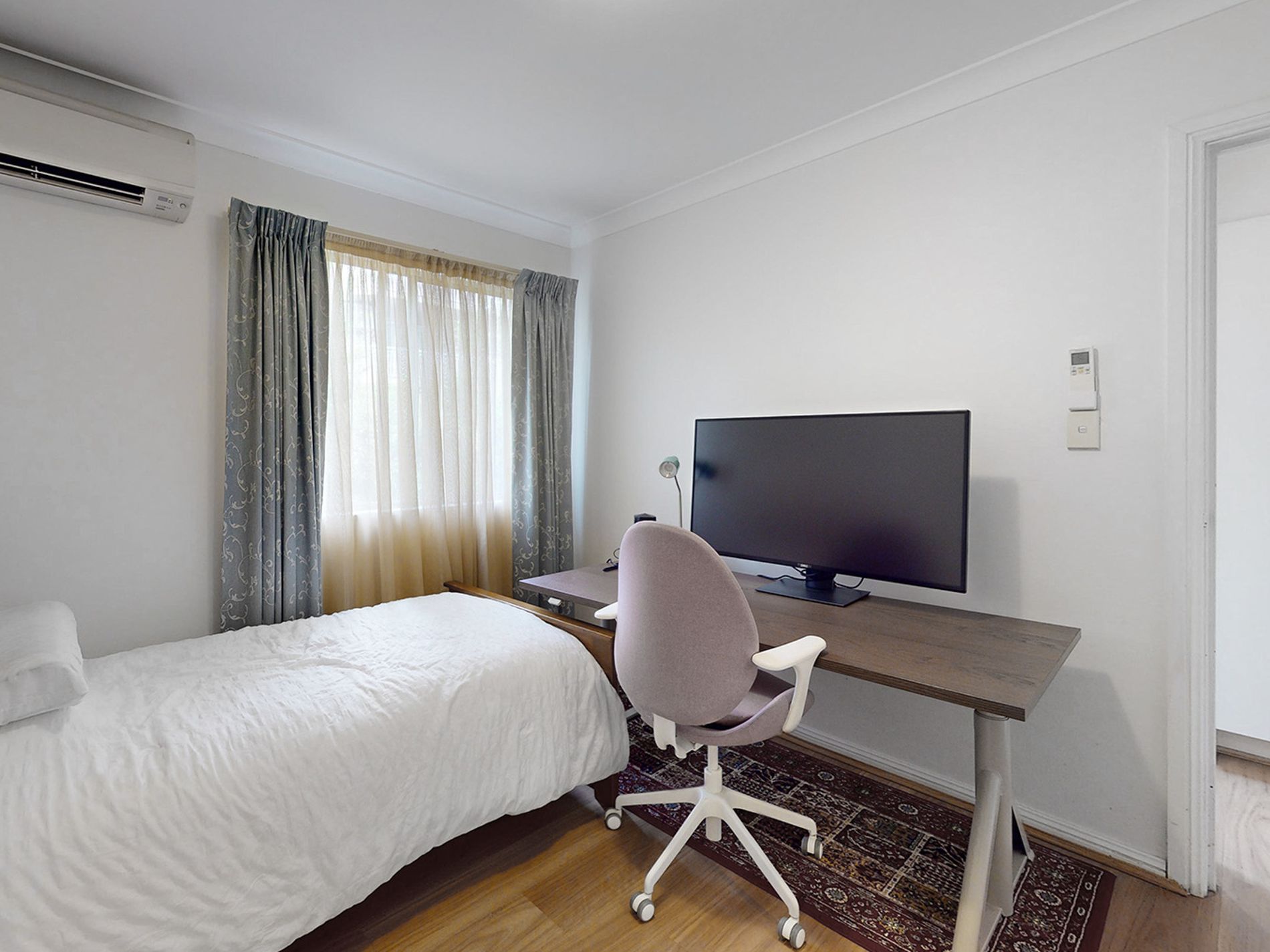 - Two generous bedrooms, with mirrored built-in and split- air-conditioner system