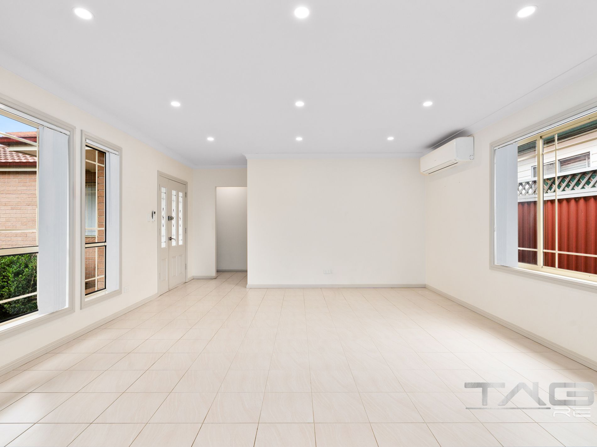 - Bright open-plan living and dining area with tiled flooring and split system air conditioning