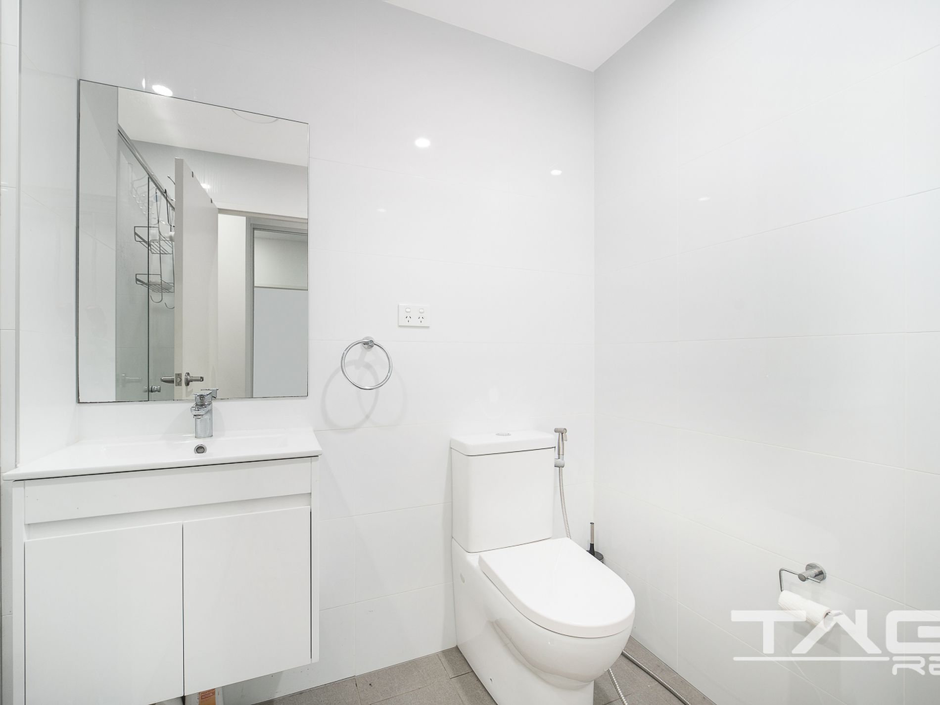 - Spacious bathroom with stylish floor-to-ceiling tiles