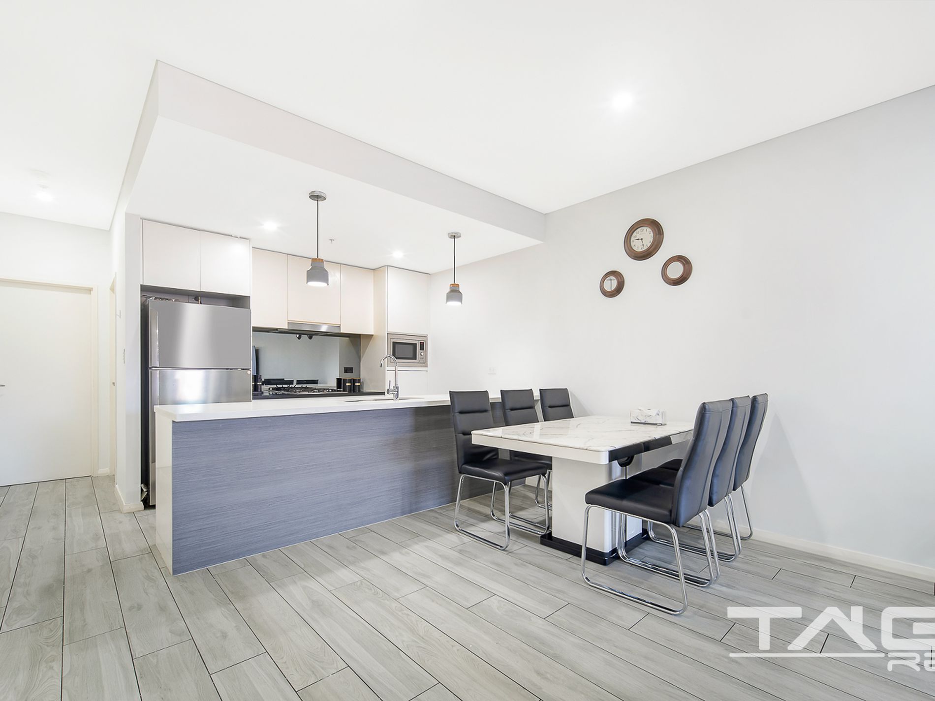 - Downlights throughout creating a bright and modern look