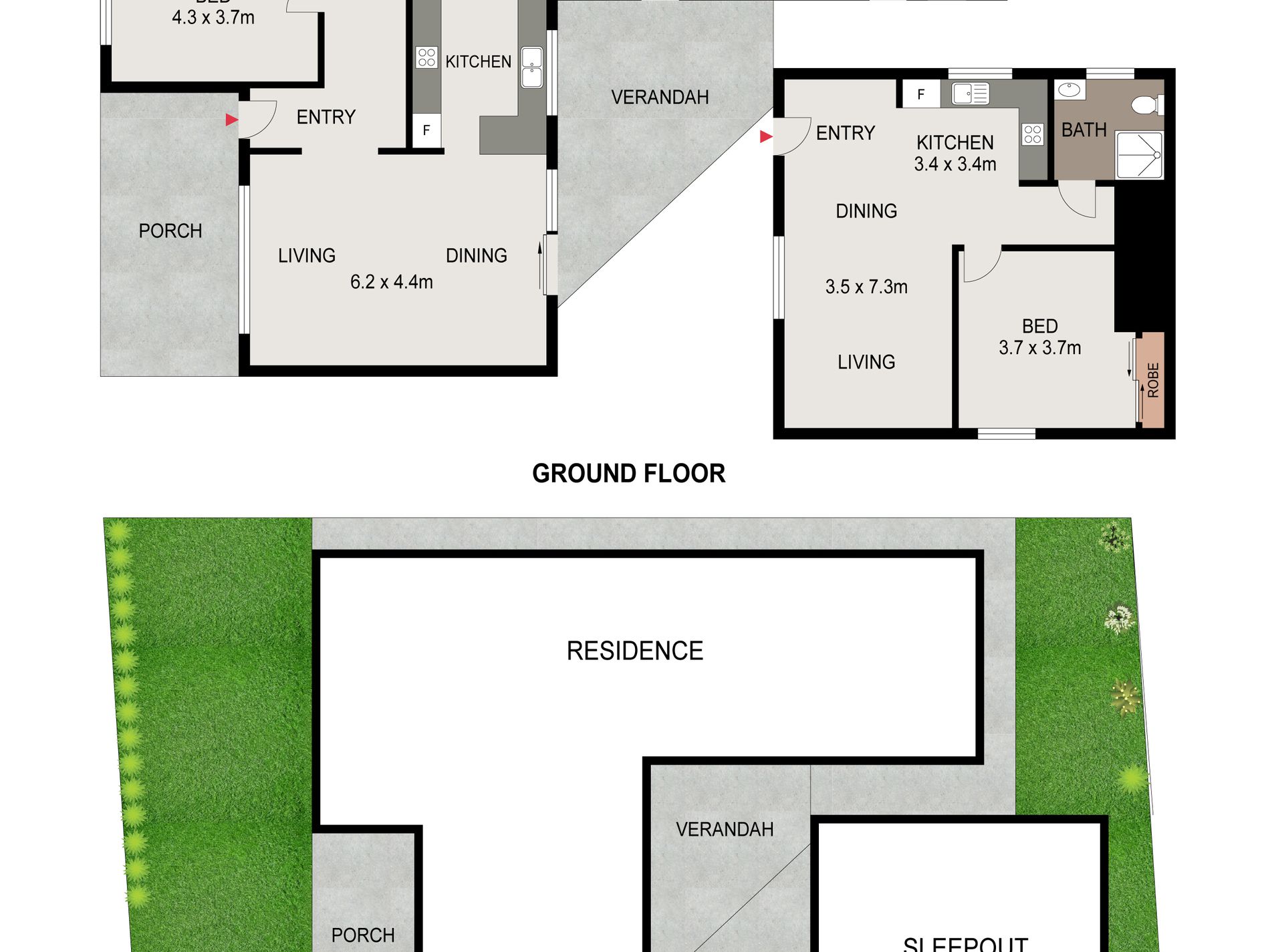 - Separate living areas throughout, offering flexibility and privacy