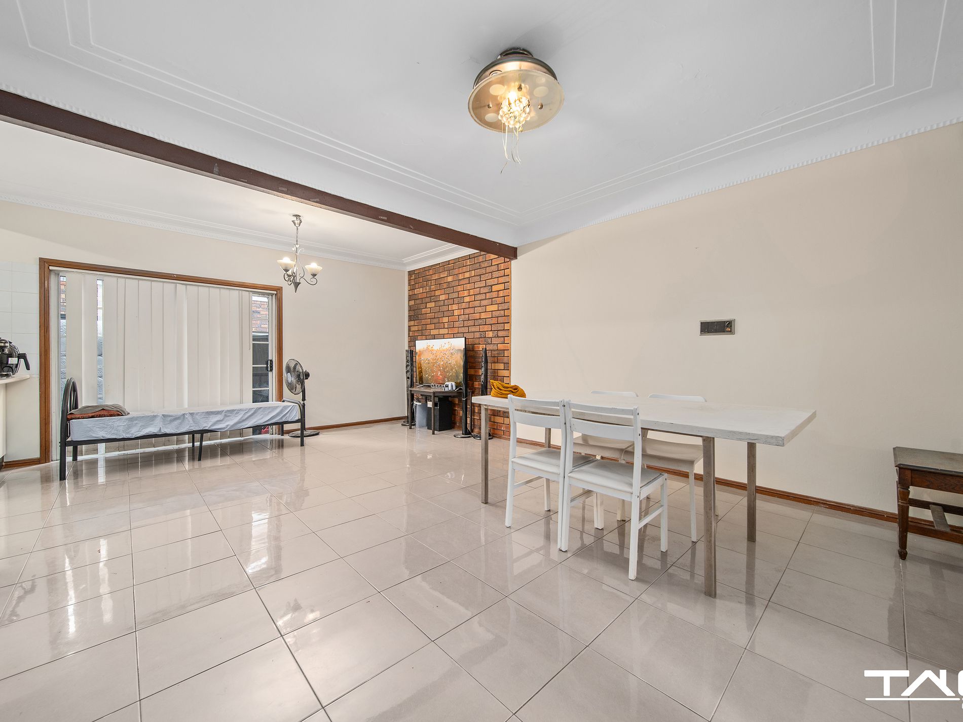 - Solid brick home divided into three separate dwellings