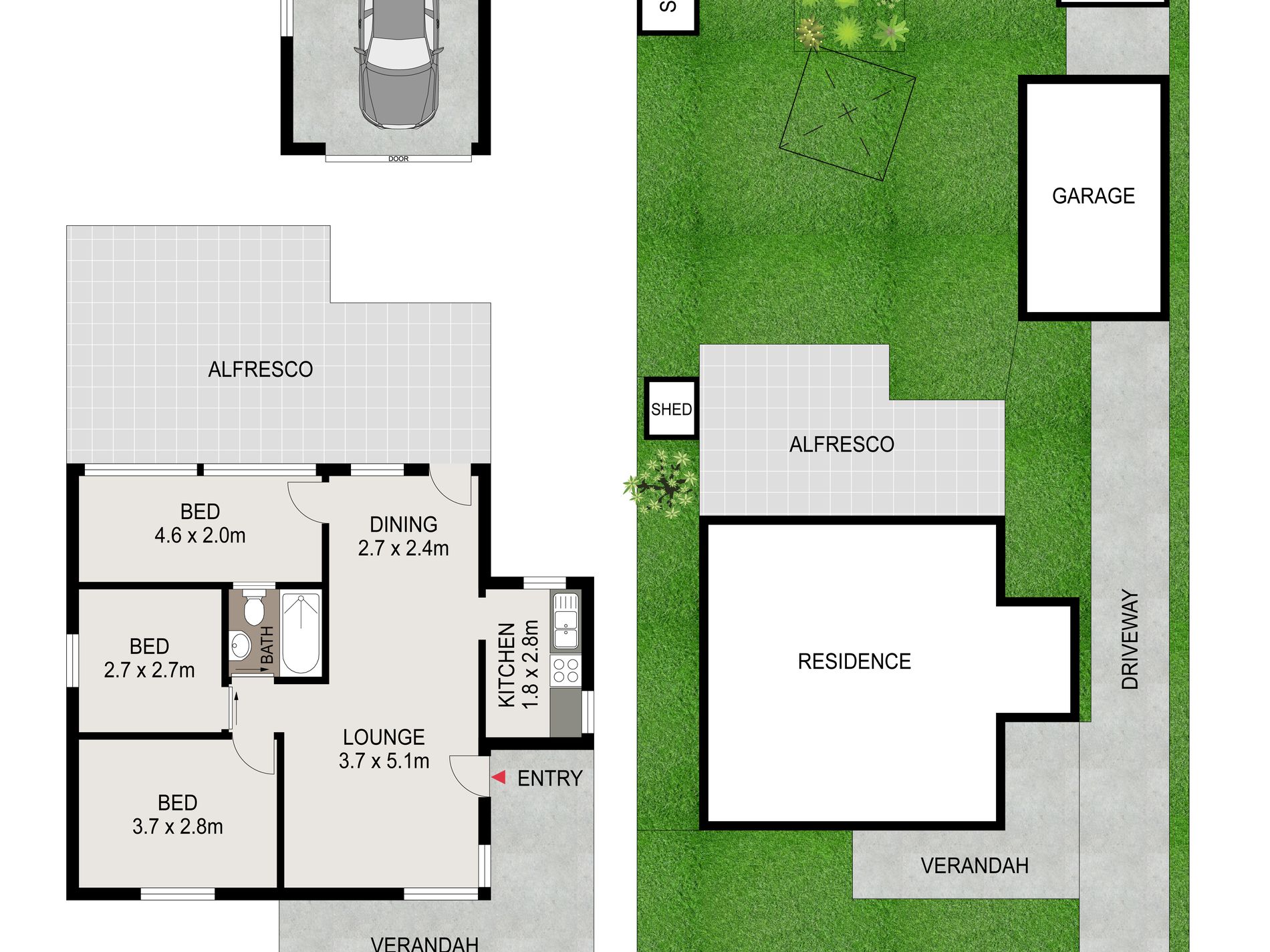 - Generous block with side access